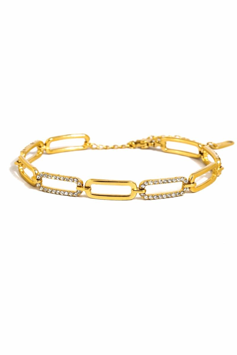 Evie 18K Gold Non-Tarnish Glam Rhinestone Chain Bracelet | Water-Resistant Stainless Steel